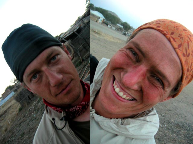 | Und so sieht man danach aus. Der Herr links im Bild hat kurzzeitig die wichtigste Lektion vergessen: immer lächeln auch am Grenzübergang vom Sudan nach Äthiopien (km 9600) |