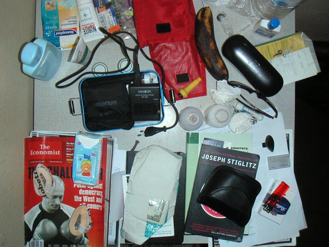 Traveller-Handgepäck. Die Rothmans (rechts unten) schmecken übrigens ganz passabel (km 11.020)