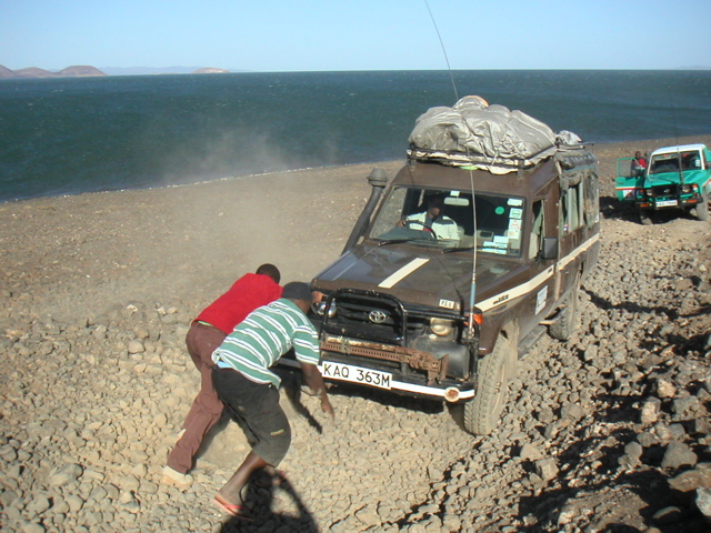 Auf dieser Piste kommt uns kurze Zeit später ein Peugeot aus Stuttgart entgegen. Wissen die eigentlich, wo sie sind? (km 11.995)