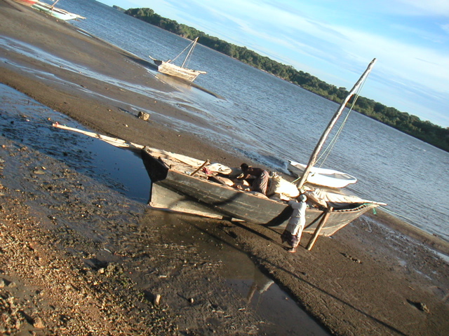Abkürzung nach Sansibar: In Pangani an der tansanischen Küste wird die Dhau für den nächsten Tag beladen (km 13.430)