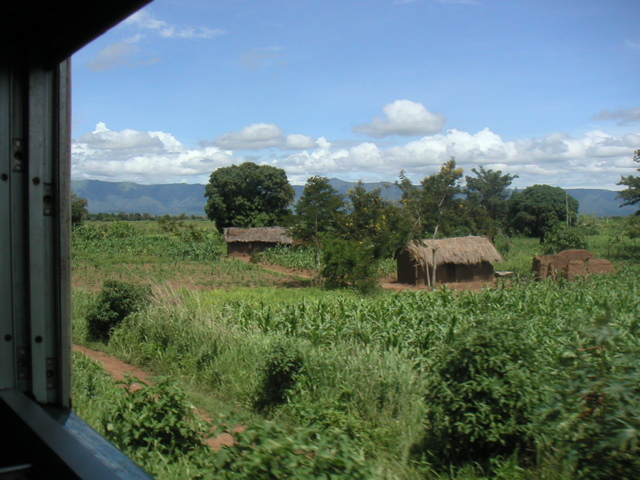 Draußen fliegt die Gartenlandschaft in Südwest-Tansania vorbei (km 14.500)