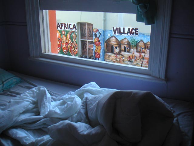 No sleep in Kapstadt: das einzige Zimmer in der Innenstadt, das wir finden können, ist heiß und stickig. Aber der Ausblick ist klasse (km 20.840)