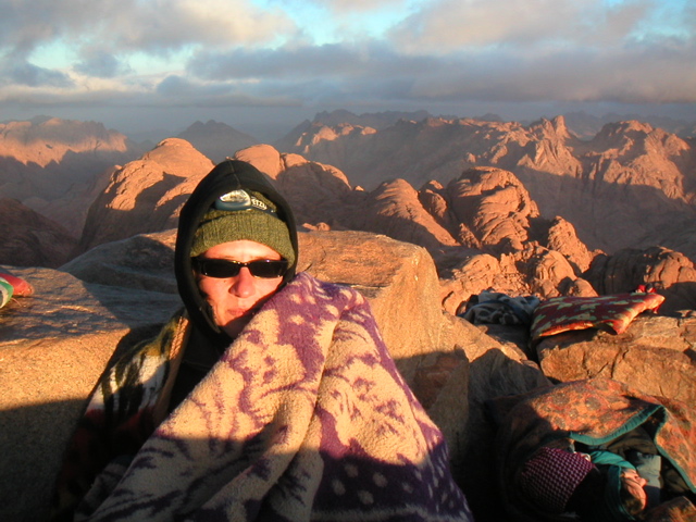 Der Sonnenkult hat seinen Preis: Auf dem Gipfel ist es morgens bitterkalt (km 5725)